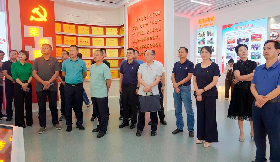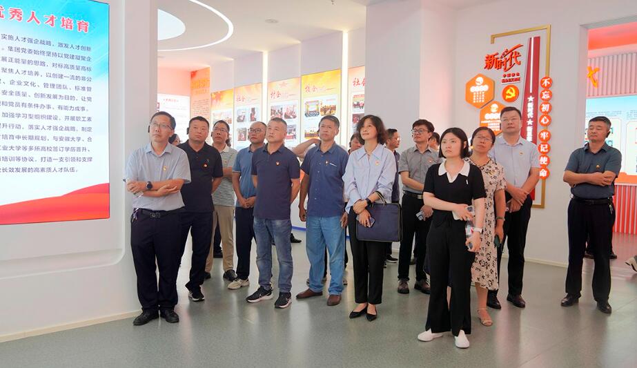 调研组一行参观了安徽天康集团党建文化展示中心,并详细了解“企业+”党建工作模式开展情况,认真听取了集团党建与发展互促共融、示范带动作用发挥、党建品牌创建等情况。调研组充分肯定了天康集团的发展成就和党建工作,并对“红心向党、匠心智造”党建品牌给予了高度赞扬。